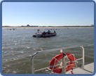 Sun June 2 members of the West Wildwood Vol. Fire Company on Marine 21 participated in the Swim portion of the "Escape the Cape" Triathlon. WWVFC Marine 21 was requested by the organizer to be a part of the Marine Operations to maintain swimmer safety and remove any ill swimmers from the water. The members stood by and assisted race staff. There were close to 900 participants. There were two destinations that participants jumped of the car deck of the Twin Capes Ferry vessel. This was approximately a 12'-15' drop into the Delaware Bay. Fortunately no one was injured during this event and Marine 21 along with the other marine units saw no incidents. All swimmers made the trek to shore and once given the all clear by the organizers, Marine 21 and its crew returned to dock.